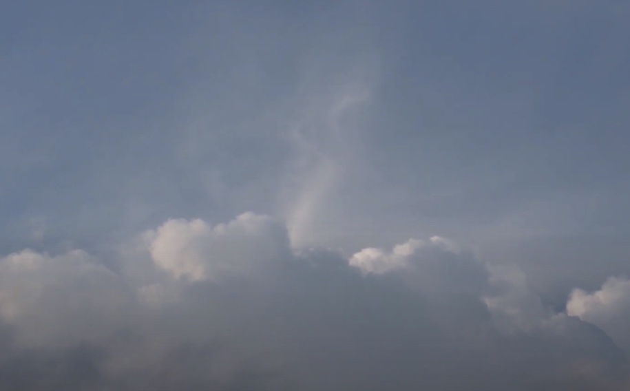 To se změnilo v 18:30, kdy se bouřka začala velmi zvolna pohybovat k V až VJV – a tedy přibližovat. Obloha byla plná oblačného balastu, ale přesto jsem vyšel v 18:35 podívat se na dvůr. Bouřka byla v tom okamžiku vzdálená 15 km SZ směrem, přibližně nad Žacléřem. A pak nastal cvrkot. Nad vrcholem bouřky se totiž něco hýbalo! Jednalo se o to, co jsem viděl na jednom „konspiračním“ videu? Vletěl jsem do domu, popadnul kompakt a hrnul se zpět. Fotografovat nemělo smysl, spustil jsem hned filmový záznam a doufal, že aparát dokáže přiměřeně zaostřit.