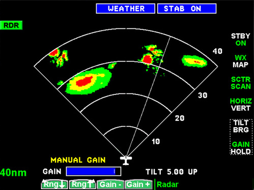 Když se přeneseme od plánování samotného letu do kokpitu dopravního letadla a představíme si, že už míříme do cílového letiště, položme si otázku, jak se posádka letadla vypořádá s nepřízní počasí, která se objeví během letu. Jaké jsou možnosti? Pro hledání aktuálních informací prostřednictvím internetu už je pozdě, nehledě na to, že se na něj pravděpodobně ani nedostane. Většina dopravních letadel je naštěstí vybavena palubním meteorologickým radarem, který poskytuje pilotům potřebné aktuální informace prakticky instantně narozdíl od pozemního radaru, který má v současné době např. u nás obnovu dat po 5-ti minutách, což by pro posádku byla nepřijatelně dlouhá doba vzhledem k rychlosti letícího letadla.