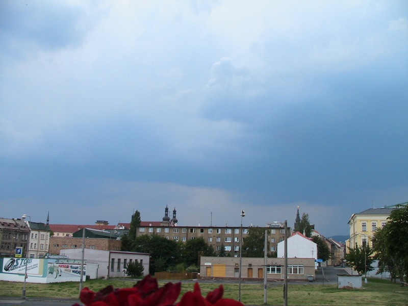 Toto je pohled na SZ přibližně v době, kdy jsem pořídil výše zmíněný snímek. Základna bouřky byla již nad městem, ale stále ještě nevypadávaly srážky a bylo slyšet vzdálené hřmění.