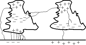 Jak se bouřka pohybuje nad krajinou, vytváří na zemi pod sebou pomocí elektrostatické indukce náboj opačné polarity. Pod záporně nabitou základnou mraku vzniká kladný náboj, zatímco pod kovadlinou je tomu naopak. Pokud energetický potenciál mezi zemí a bouřkovým mrakem dosáhne hodnot, při kterých se vzduch stává vodivým, udeří blesk.