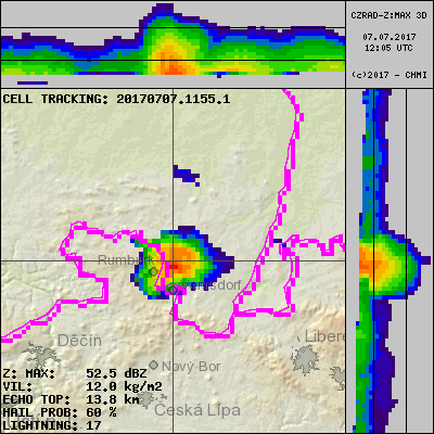 | Detailní přehled radarového trasování supercelární buňky. © Český hydrometeorologický ústav, AMS Velikost: 1657.3 kB |