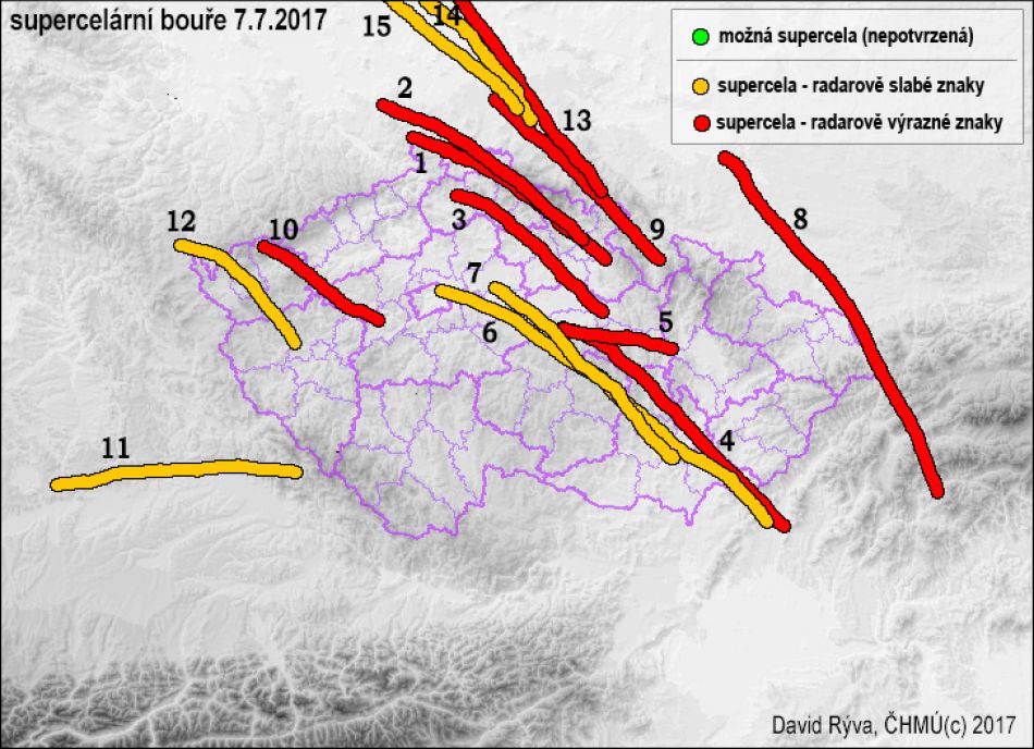 | Detailní přehled radarového trasování supercelární buňky. © Český hydrometeorologický ústav, AMS Velikost: 1755.6 kB |